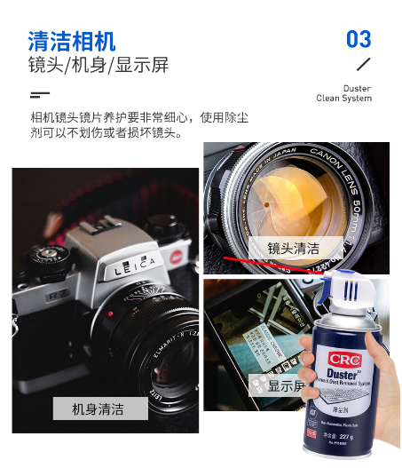 | 能安全輕易地吹去任何物體表面的塵埃,或纖維雜質(zhì),而不會(huì)損害敏感零件或儀器表面,對(duì)于一些不易清潔的角落,高壓除塵噴劑,更是輕而易舉的完成清除工作 | |||
